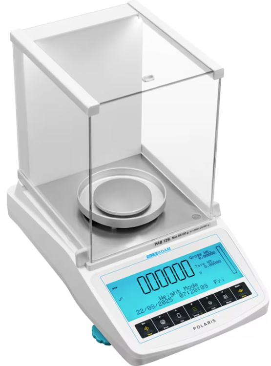 Polaris Sem-Micro Analytical Balance offers dual range, illuminated weighing chamber, capacity tracker, multi-level security, compliance with GLP/GMP, multiple communication interfaces, intuitive multi-line LCD display provides at-a-glance instructions and application status in real time, fast response time, checkweighing is simplified with color-changing backlight to show if sample is within user-specified limits, multilingual, multiple weighing modes plus custom unit, memory storage, in a robust housing with 3-way glass draftshield and internal automatic calibration.